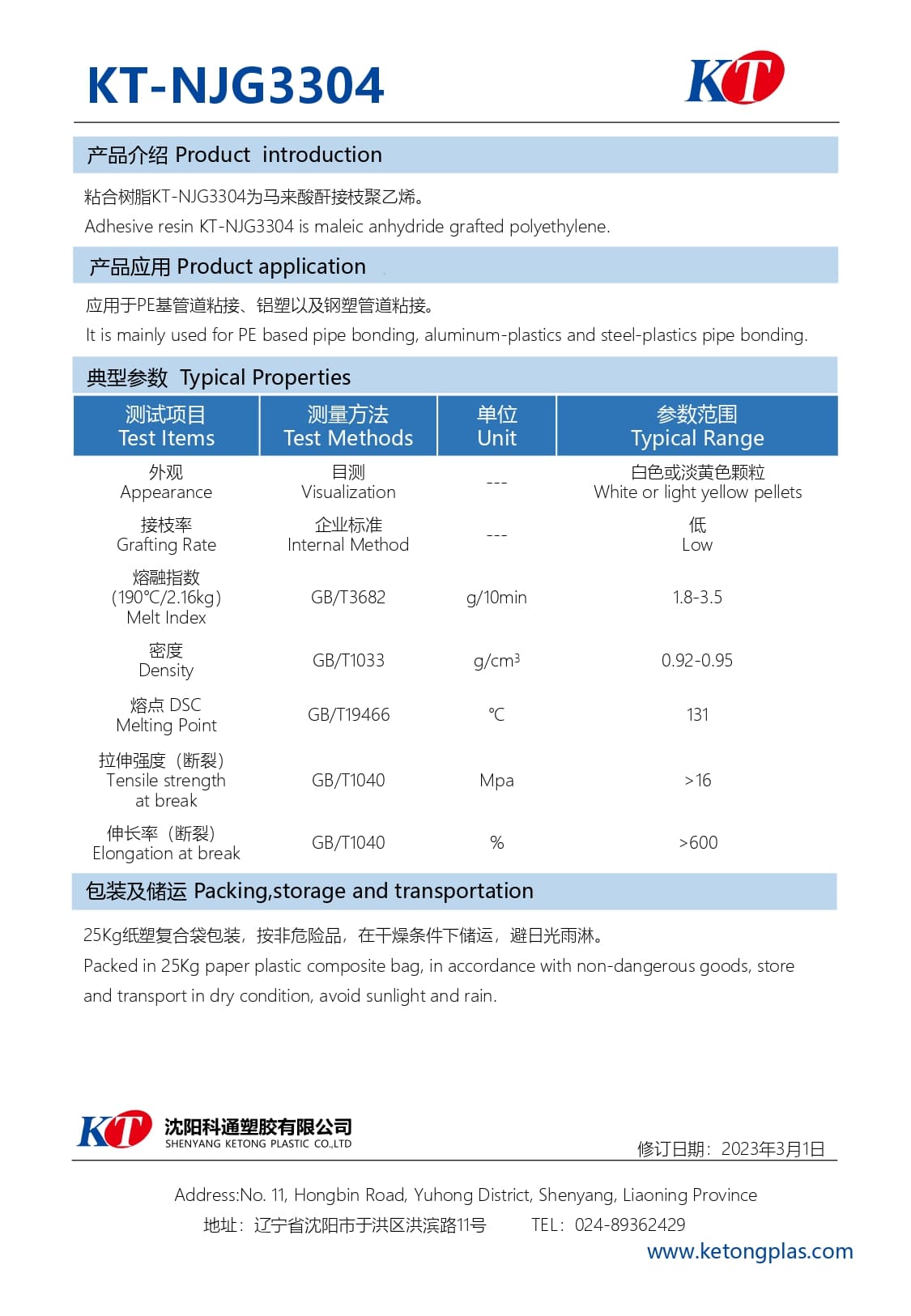 - Introducing KT-NJG3304, our high-quality adhesive resin formulated from maleic anhydride grafted polyethylene.